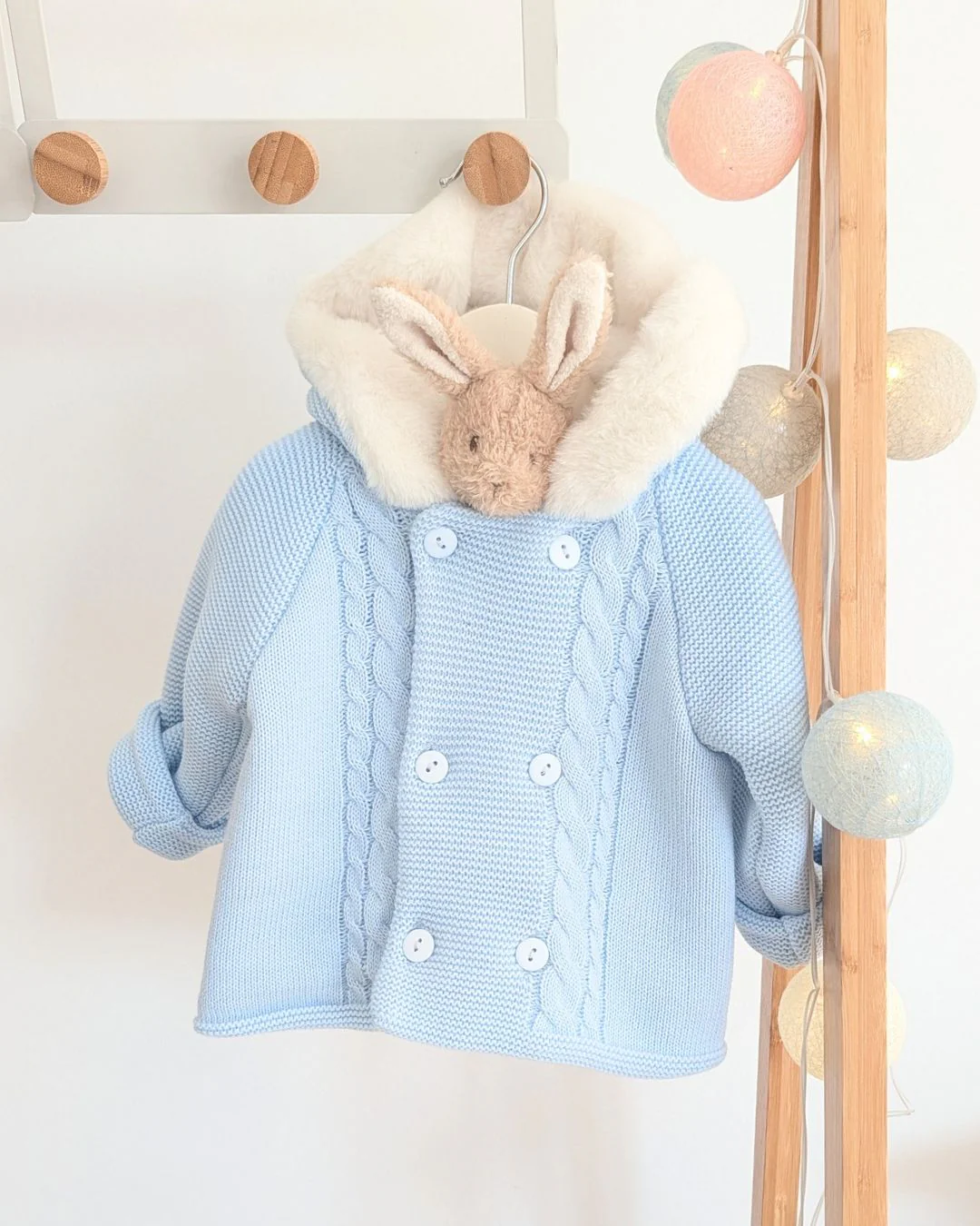 Preciosa chaqueta de punto con pelito en color Celeste