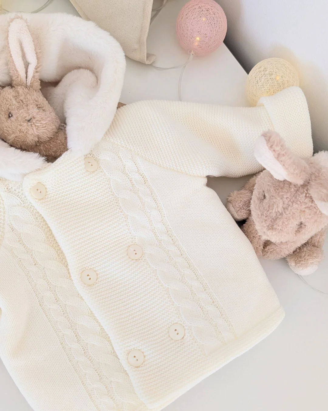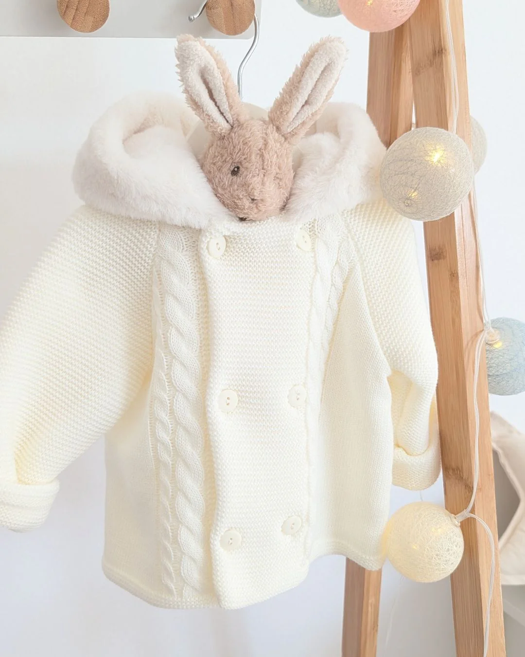 Preciosa chaqueta de punto con pelito en color Crudo