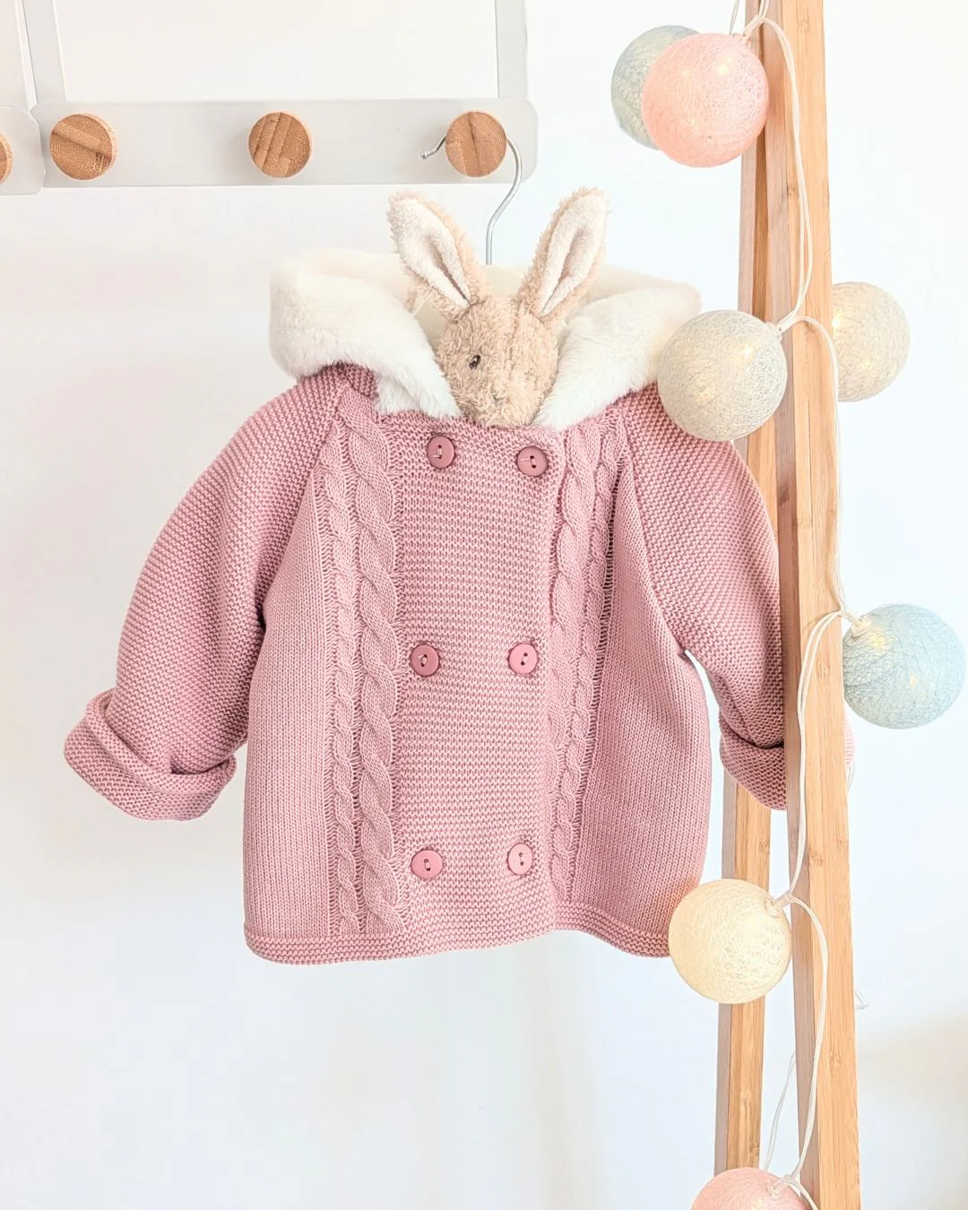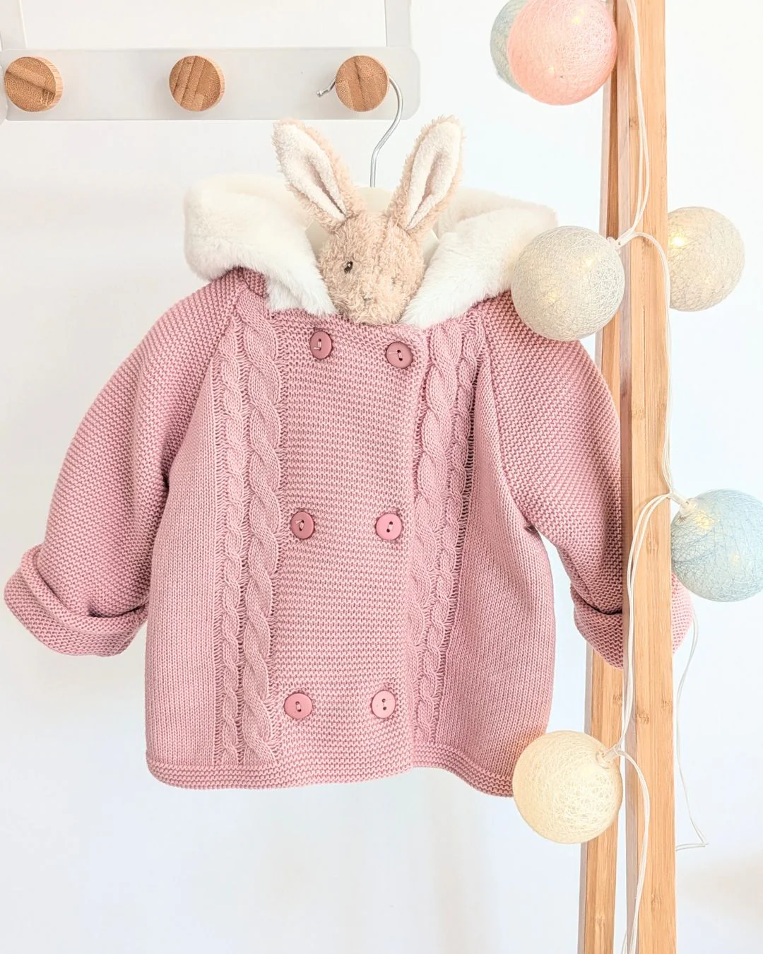 Preciosa chaqueta de punto con pelito en color Rosa Maquillaje