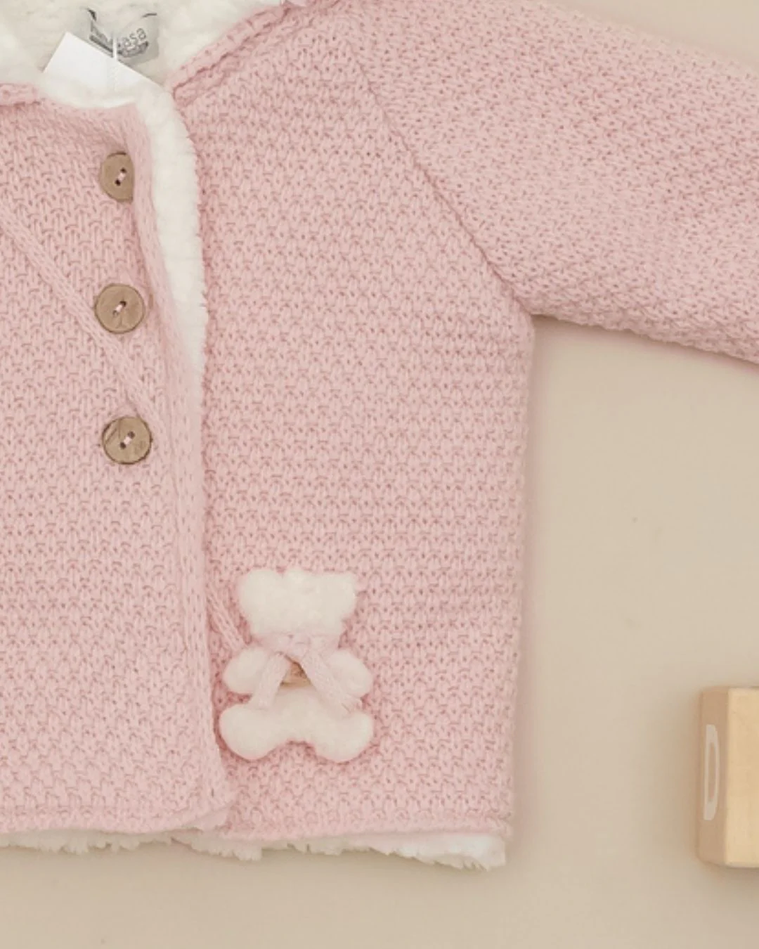 abrigo bebé rosa invierno, trenka punto bebé niña, chaqueta bebé con capucha, ropa de abrigo Pangasa Baby, trenka forrada para recién nacida, chaqueta osito bebé, ropa de punto para bebé niña, trenka cálida bebé, abrigo infantil rosa empolvado.