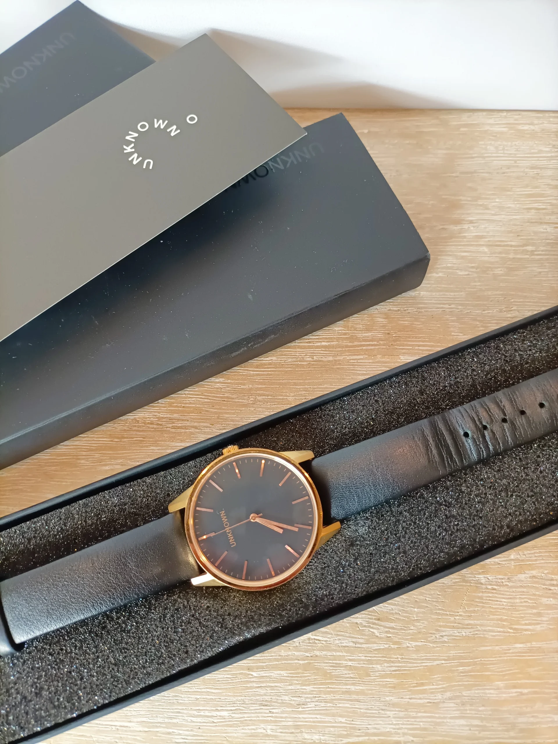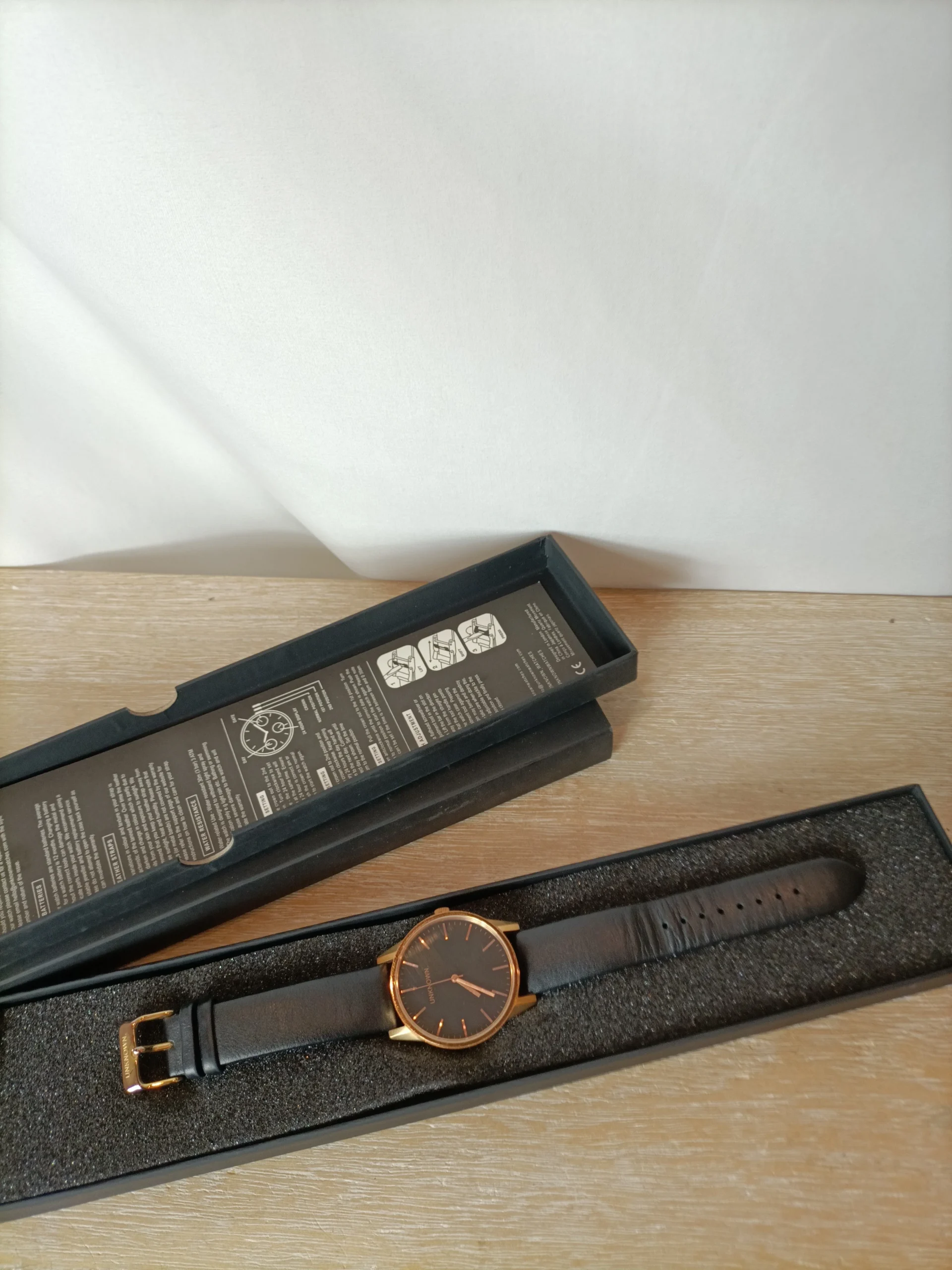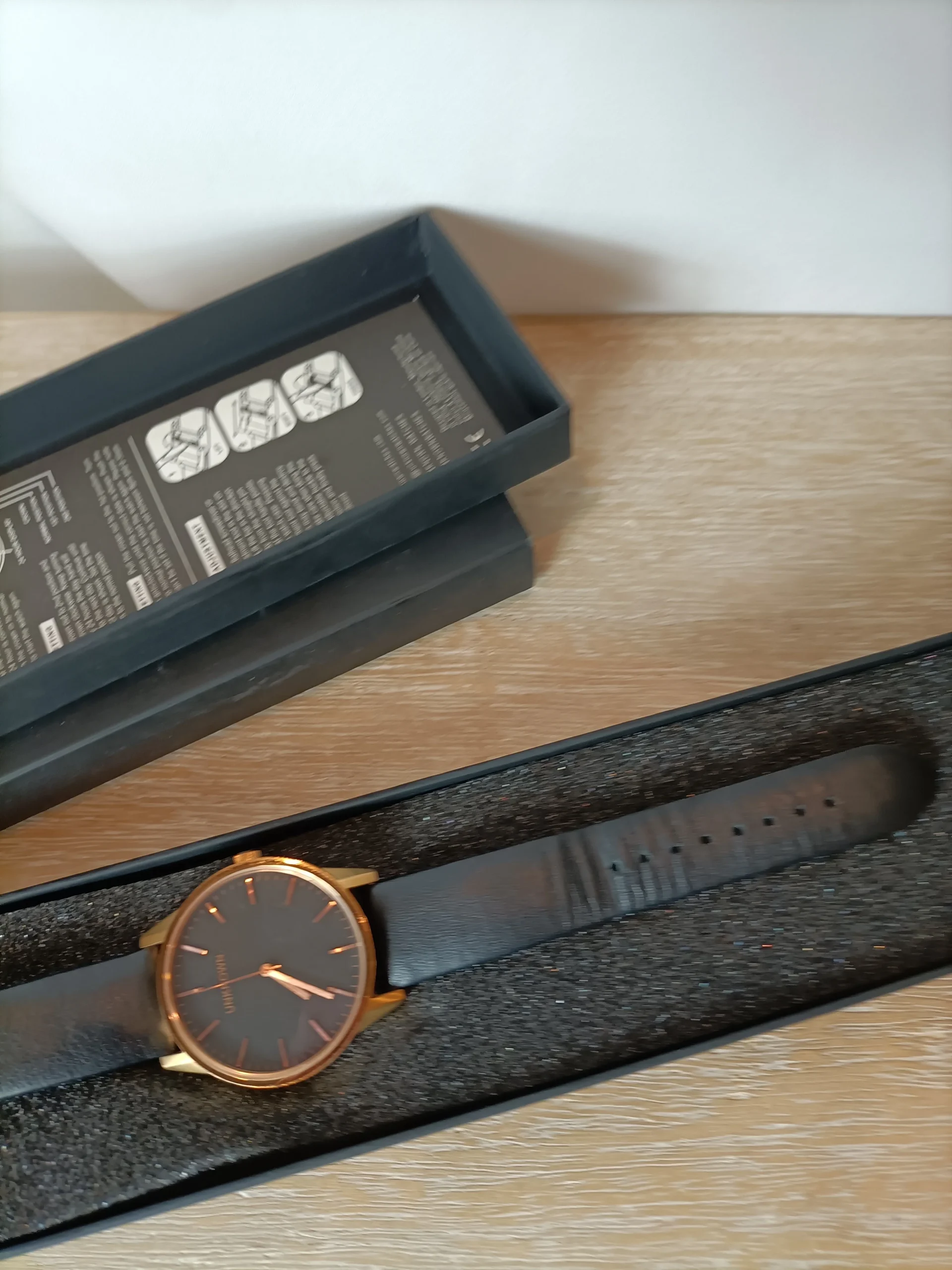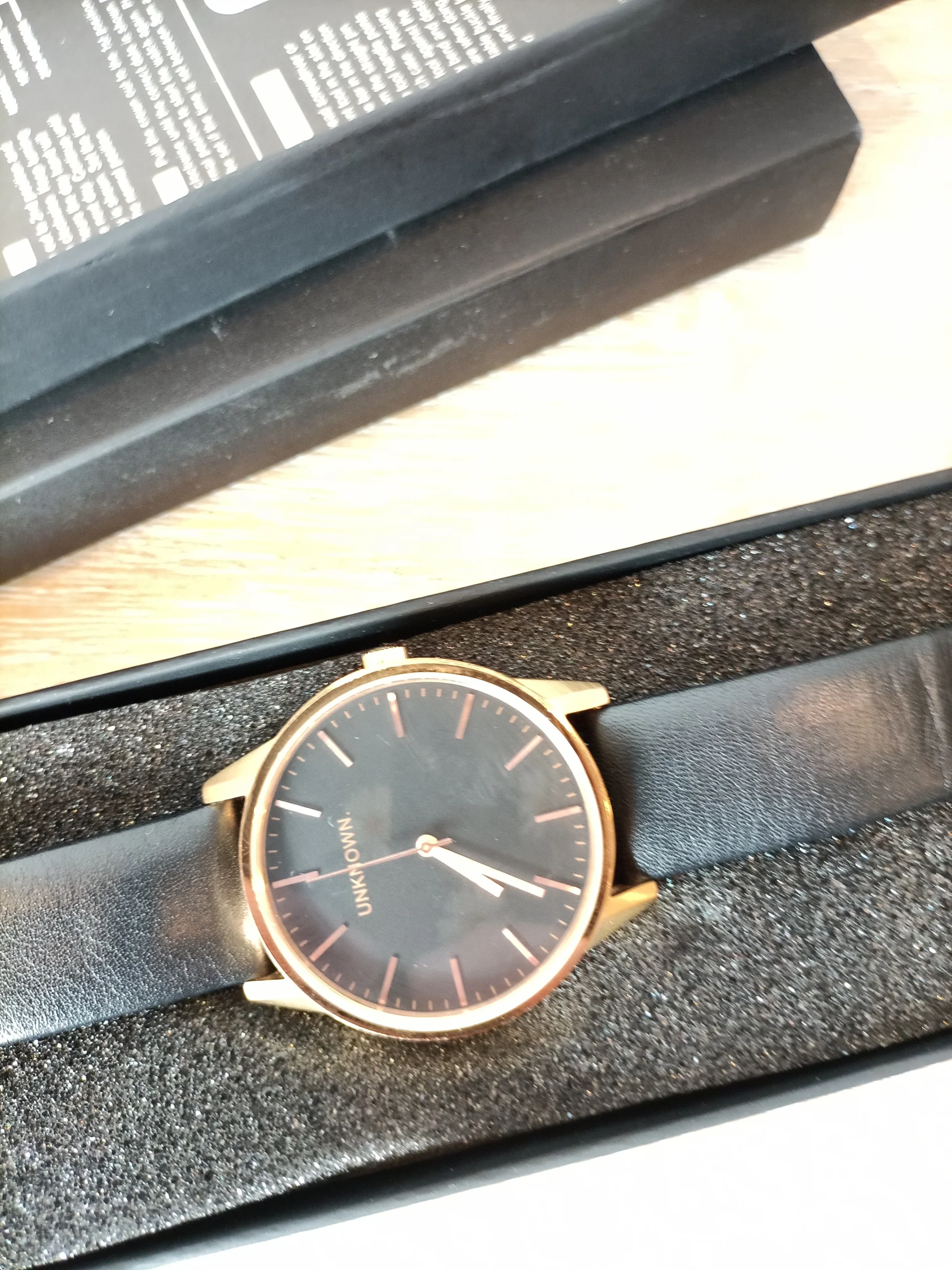 Reloj negro esfera dorada. Habría que cambiar la pila