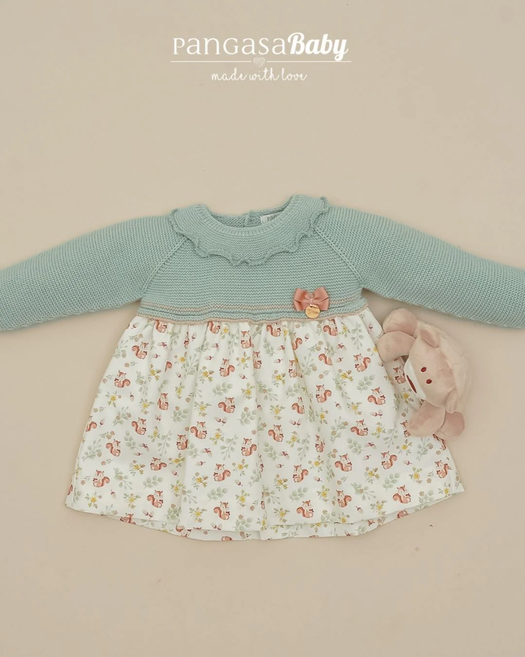 Vestido Ardilla Verde Empolvado🐿Soft & Wild – Pangasa Baby