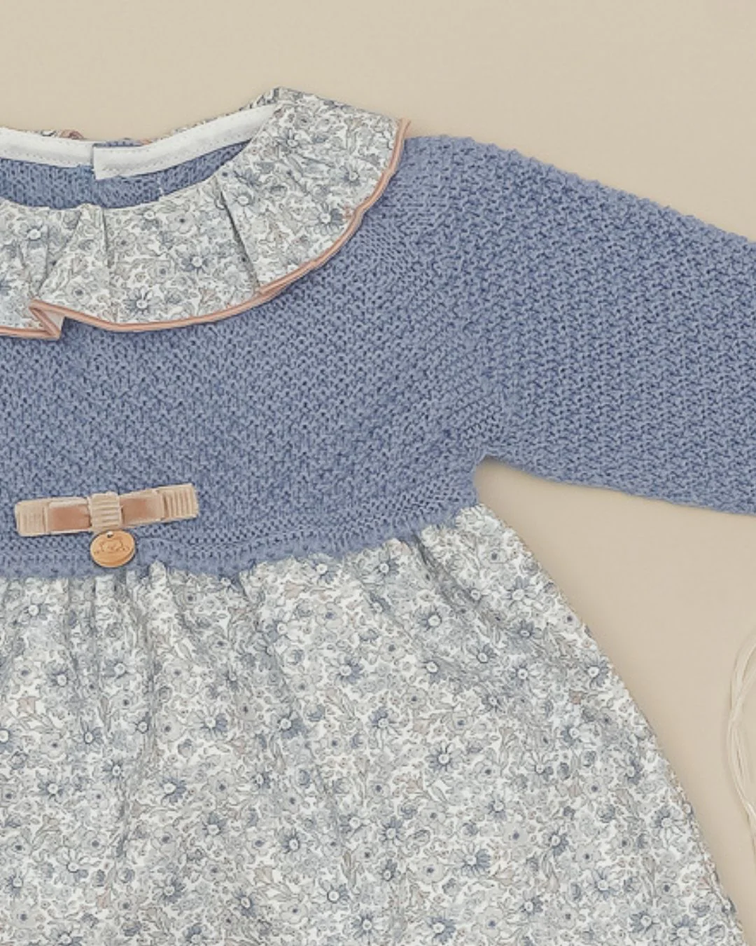 - Vestido de bebé con cuerpo de punto y falda de algodón estampado