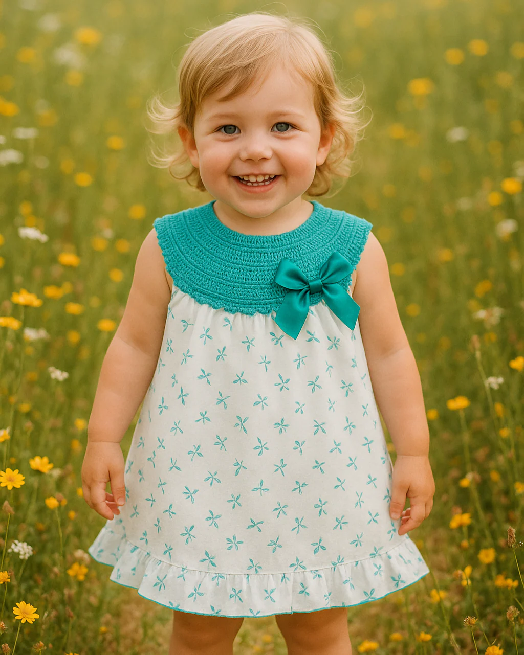 👶 Vestido de hilo y tela ideal para la primera puesta y los primeros paseos con tu bebé. desde 0 hasta 48 meses.
