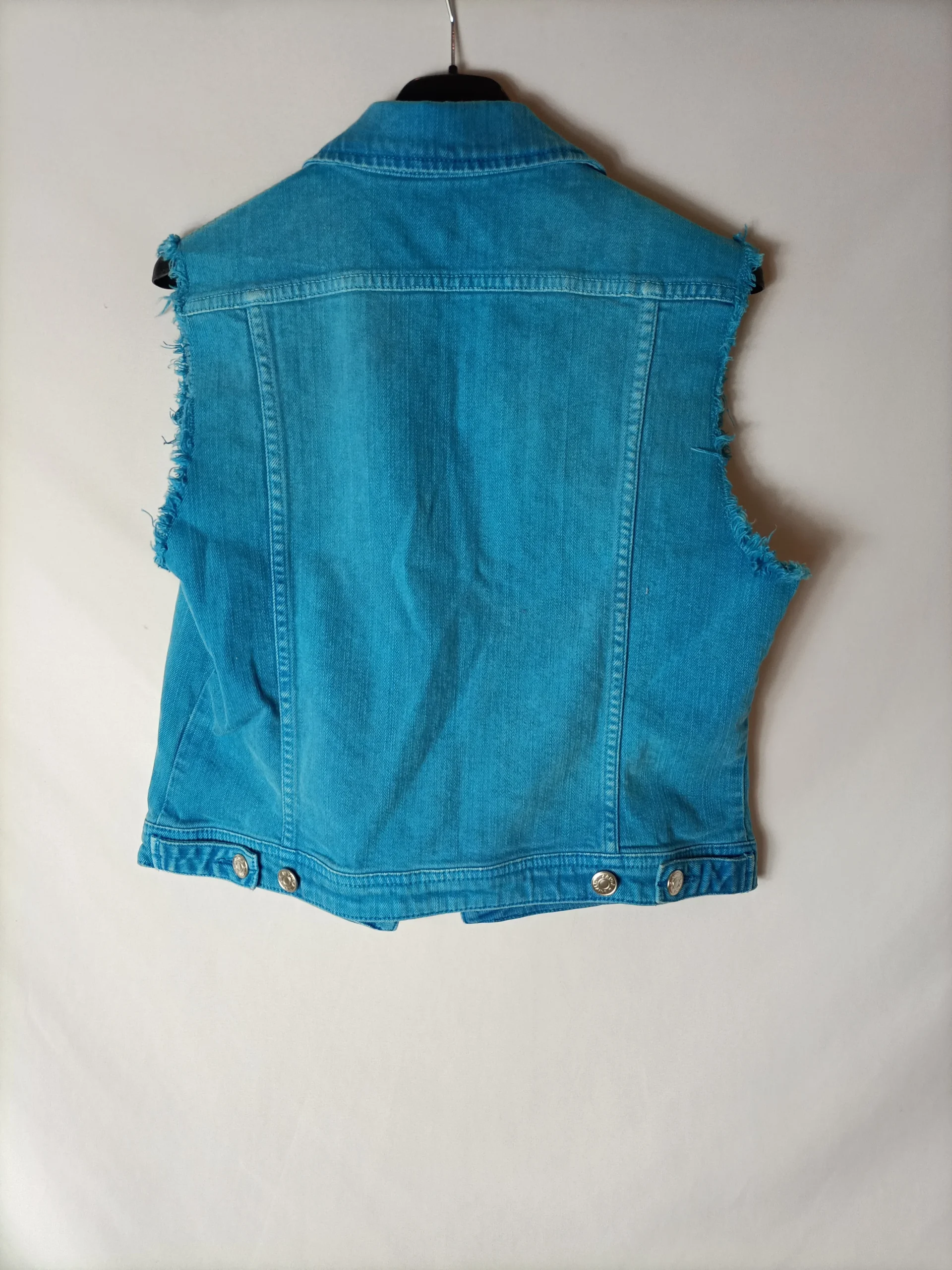Cazadora sin mangas efecto desgastado azul turquesa.