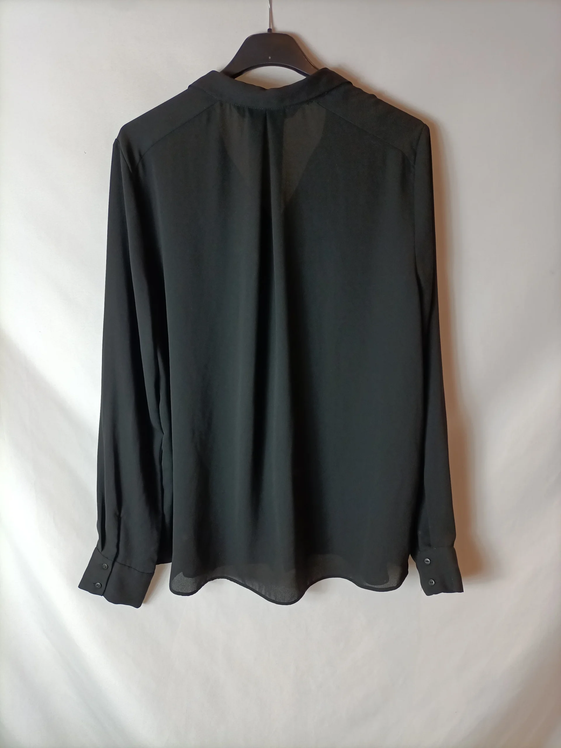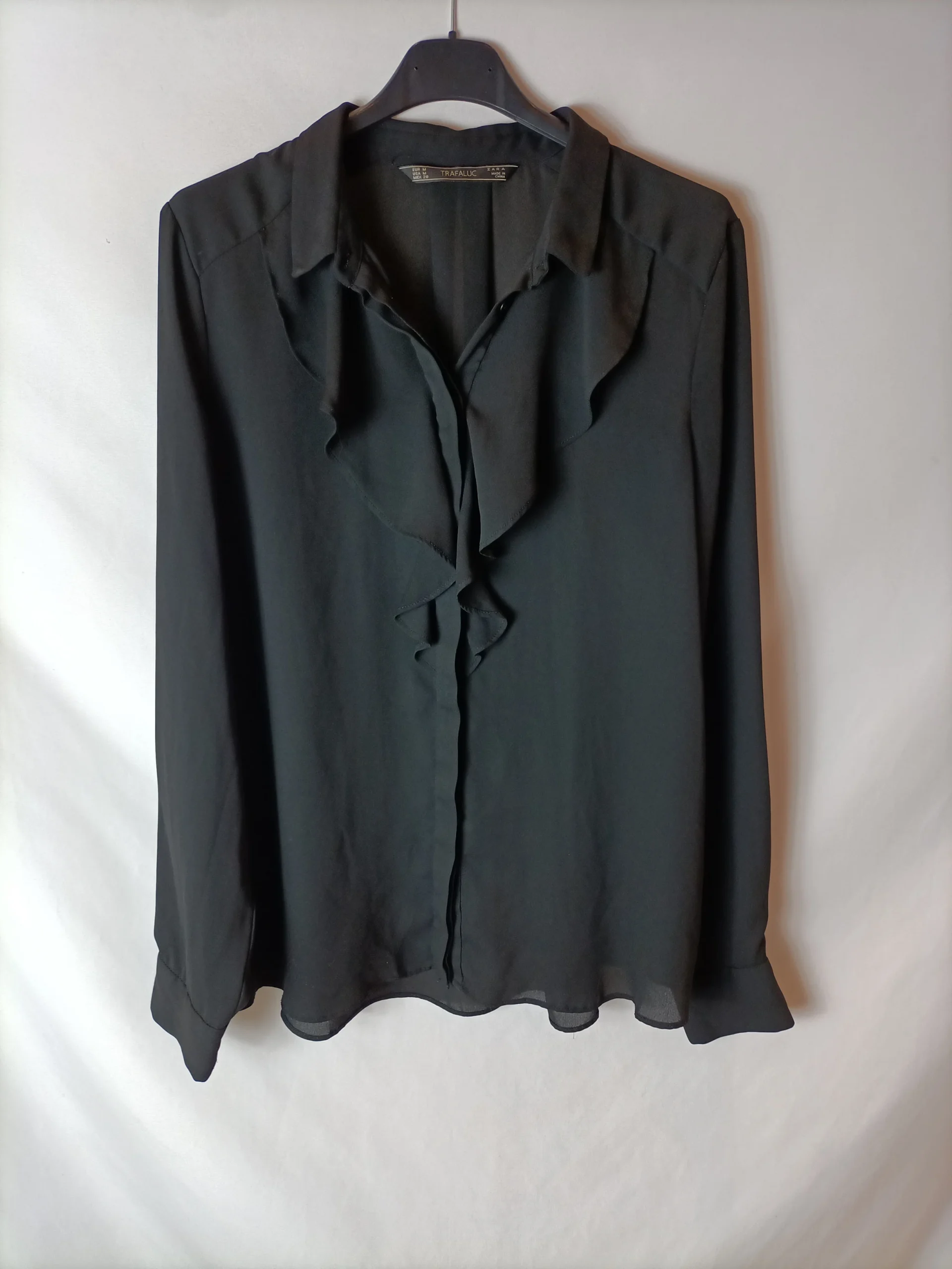 Blusa semitransparente negra con volante
