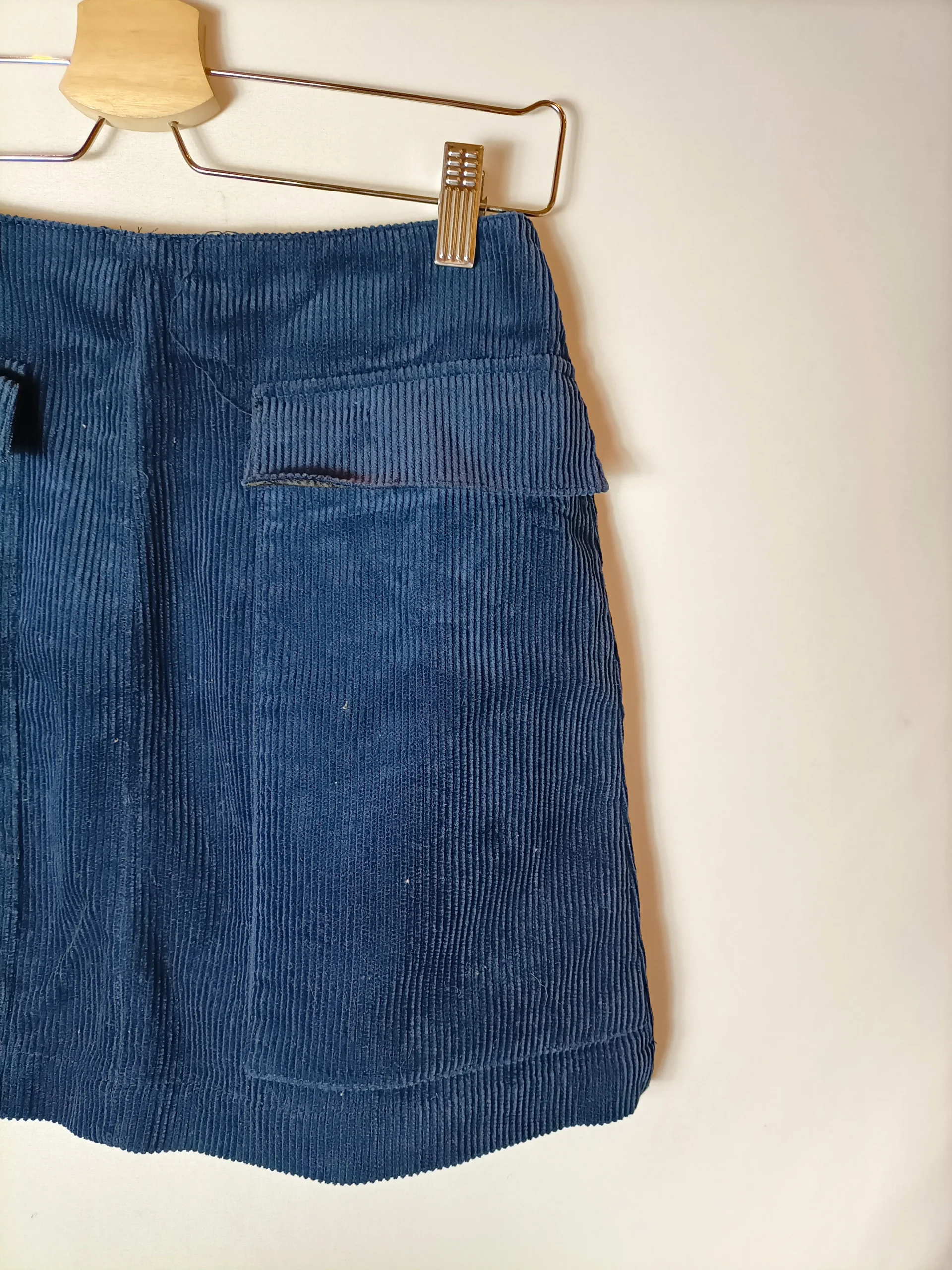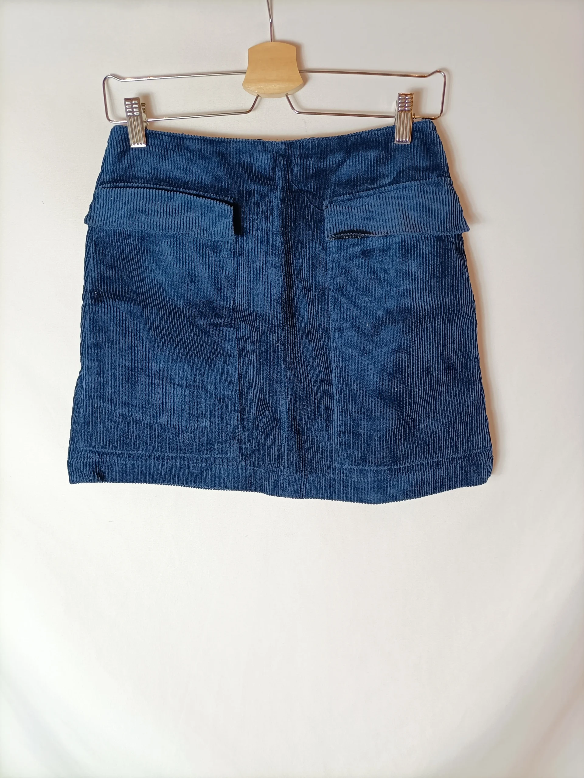 Falda corta de pana azul. no elástica. cintura 35 cm