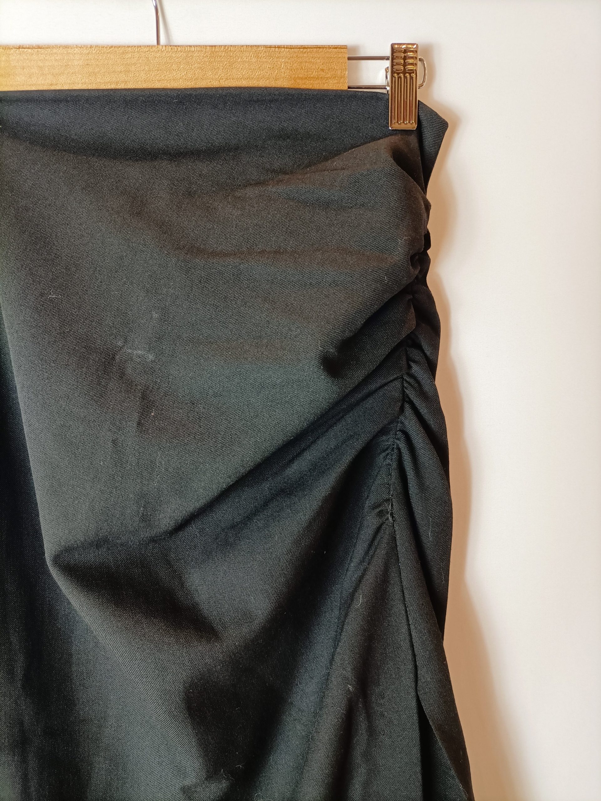 Falda tubo negroña. Detalle de fruncido. No elástico