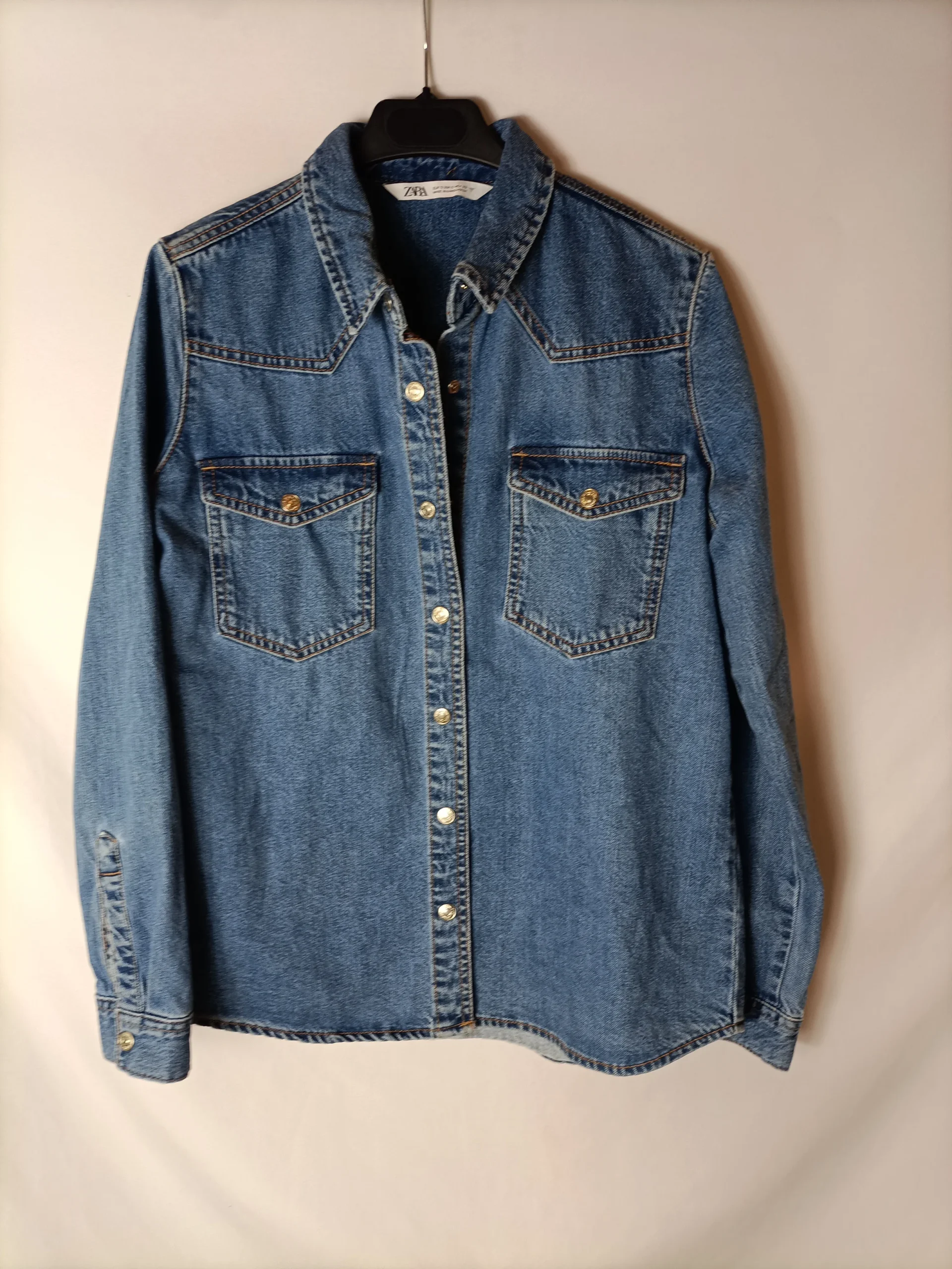 Sobre camisa vaquera. Botones con clip