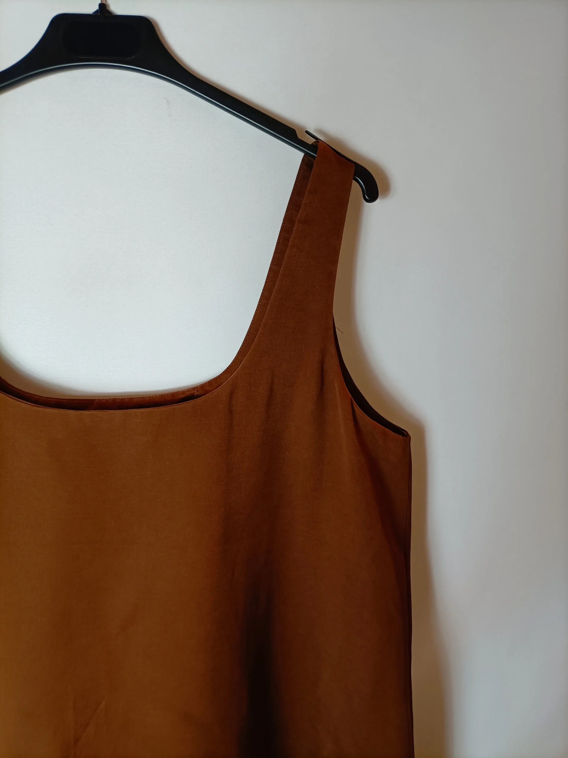 vestido corto marrón de tirantes estilo recto.