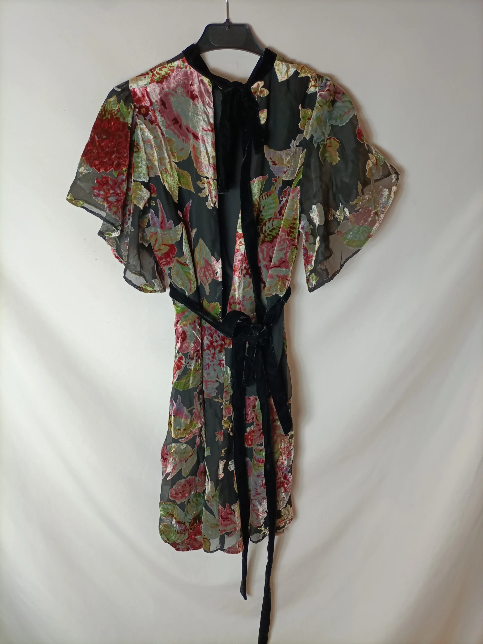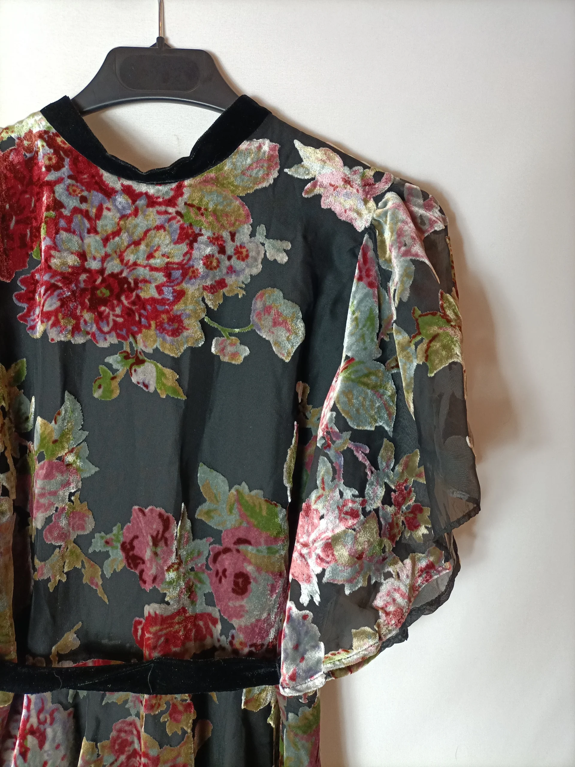 Vestido negro estampado terciopelo. Cremallera en la espalda