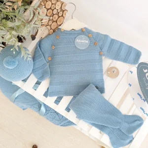 Primera Puesta Rayado Botones Azul Nube – Colección Arcoíris Juliana