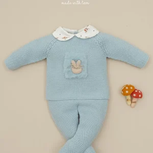 Primera Puesta Cuello Bebé Bambi & Conejo Celeste Empolvado 🦌 Petite Bambi – Pangasa Baby