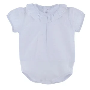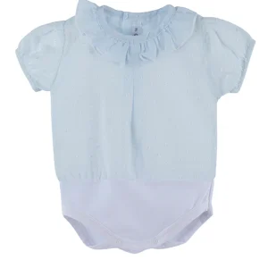 Body Manga Corta Cuello Volante Bambula Celeste – Babidu