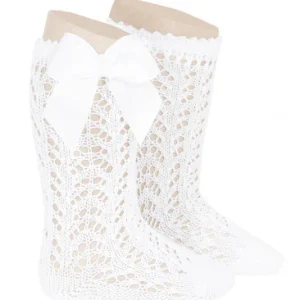 Calcetín Alto Perlé Calado Lazo Grosgrén Blanco 200 – Cóndor