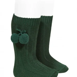 Calcetín Alto Canalé con Borlas Verde Botella 780 – Cóndor