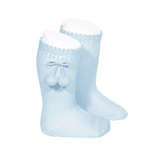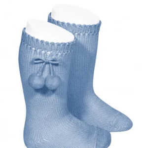 Calcetin Alto Perlé con Borlas Celeste 410 – Cóndor