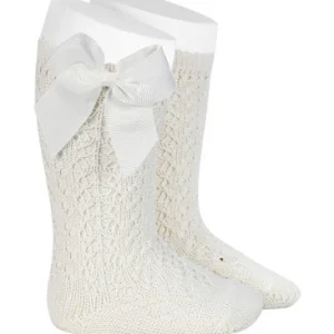 Calcetín Alto Perlé Calado Lazo Grosgrén Nata 202 – Cóndor