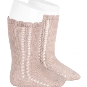 Calcetin alto perlé calado Rosa – Cóndor