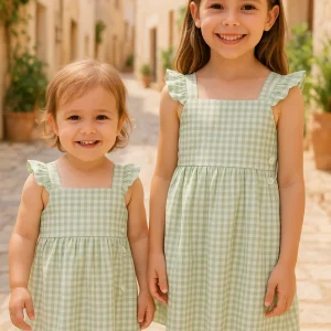 Vestido Niña Espalda Cruzada Vichy Verde