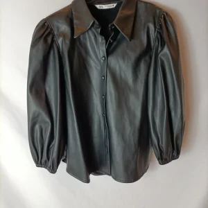ZARA. Sobrecamisa polipiel negra. T.xl (m/L)