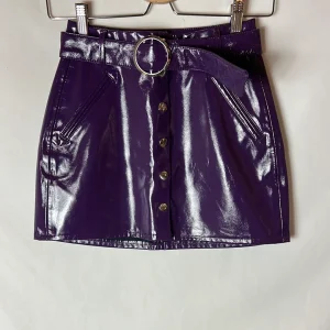 BERSHKA. Falda morada vinilo T.xs